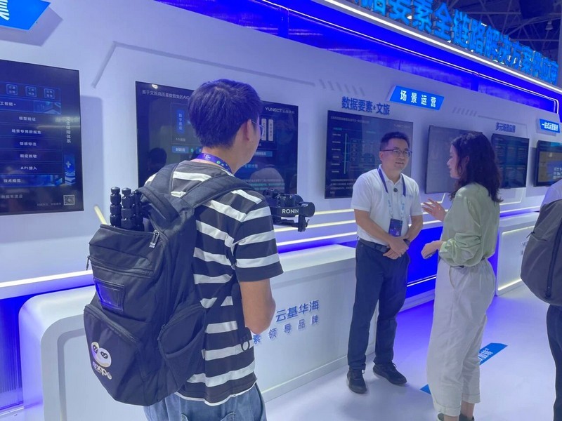 除吸引众多政企领导及行业专家,云基华海此次参展还备受媒体关注。开展以来,贵阳日报、数据要素社、数据猿、证券日报等媒体先后至公司展位,围绕公司业务方向、创新产品、前沿技术及未来愿景等话题进行了聚焦报道。