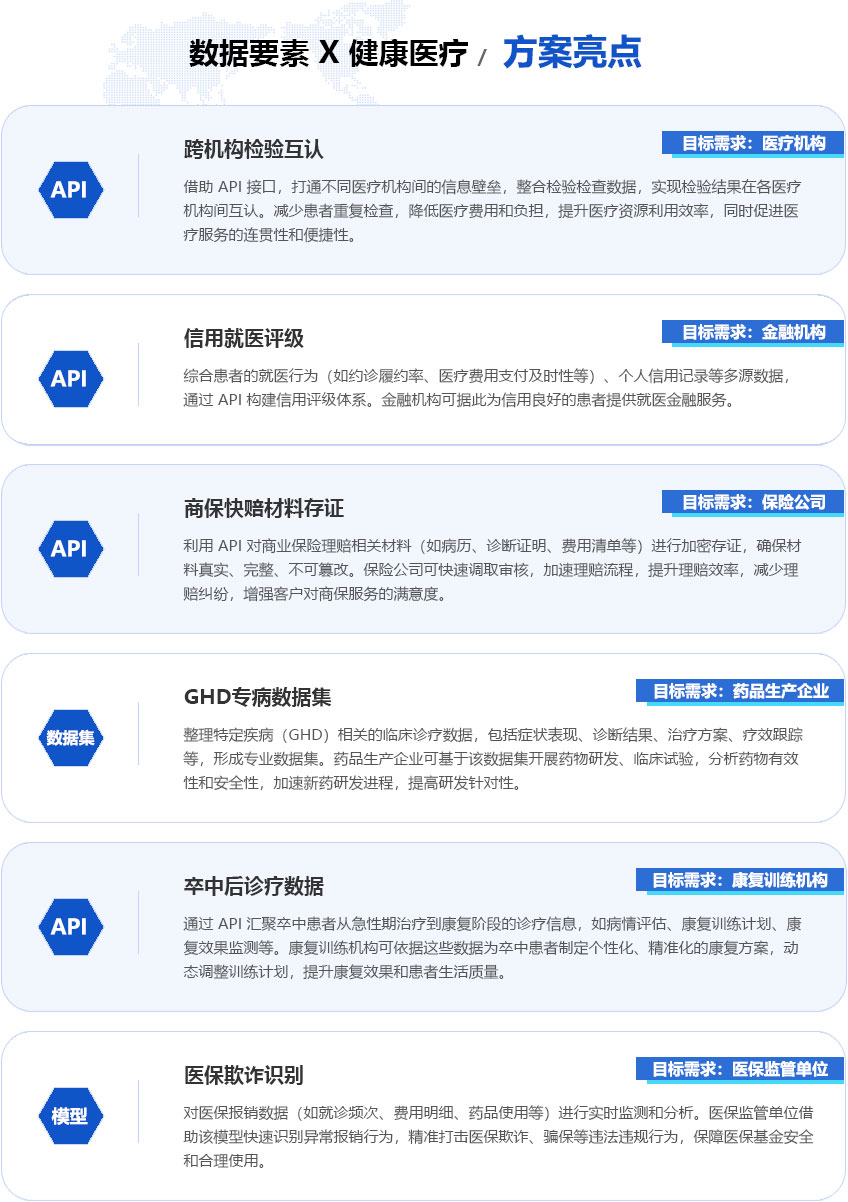 “数据要素×医疗健康”解决方案,致力于推动医疗健康领域的数字化转型。
